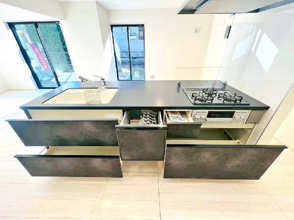 都市ガス、公営水道、公共下水、設計住宅性能評価付、建設住宅性能評価書(新築時)、駐車場1台、緑豊かな住宅地、閑静な住宅地、前道6m以上、周辺交通量少なめ、スーパーが近い(10分以内)、2沿線以上利用可、小学校徒歩10分以内、中学校徒歩10分以内、保育施設・幼稚園5分以内、公園5分以内、シューズインクローク、対面キッチン、都市ガス、システムキッチン、ガス3口、対面キッチン、アイランドキッチン、パントリー(食器・食品の収納庫)、ユニットバス、追い焚き、浴室乾燥機、ウォシュレット、トイレ2ヶ所、浴室1坪以上、浴室に窓、暖房便座、バルコニー2面、南面バルコニー、2階建、LDK20畳以上、全室2面採光、全室フローリング、クローゼット、収納、床下収納、下駄箱、全居室収納、シューズインクローク、シャンプドレッサー付き、南庭、庭、フラット35Sに対応、モニタ付きインターフォン、複層ガラス、全居室複層ガラスか複層サッシ、通風良好、陽当り良好、24時間換気システム、建物10年保証