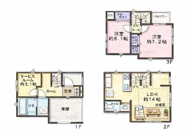 日吉駅徒歩15分 周辺に生活至便施設が多く便利 水廻り一新 2階3部屋の居室は7帖とゆとりの空間