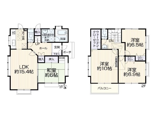 南側道路に面した明るい住まい 周辺は車通りが少なく緑の多い住宅街 1階リビング+2階は洋室4部屋の2階建て住宅
