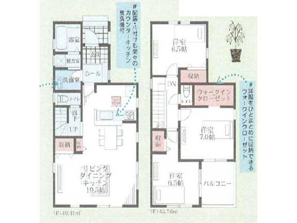 都市ガス、公営水道、公共下水、省エネルギー対策、駐車場1台、区画整理地内、緑豊かな住宅地、閑静な住宅地、都市近郊、地盤調査済、市街地が近い、周辺交通量少なめ、スーパーが近い(10分以内)、総合病院徒歩10分以内、小学校徒歩10分以内、中学校徒歩10分以内、公園5分以内、対面キッチン、都市ガス、システムキッチン、ガス3口、対面キッチン、食器洗い機付き、浄水器、ユニットバス、追い焚き、浴室乾燥機、ウォシュレット、トイレ2ヶ所、浴室1坪以上、浴室に窓、暖房便座、バルコニー2面、南面バルコニー、2階建、LDK15畳以上、省エネ給湯器、人感照明センサー、南向き、リビング階段、クローゼット、収納、下駄箱、全居室収納、シャンプドレッサー付き、フラット35Sに対応、年内入居可、モニタ付きインターフォン、複層ガラス、火災警報器(報知機)、全居室複層ガラスか複層サッシ、24時間換気システム、建物10年保証