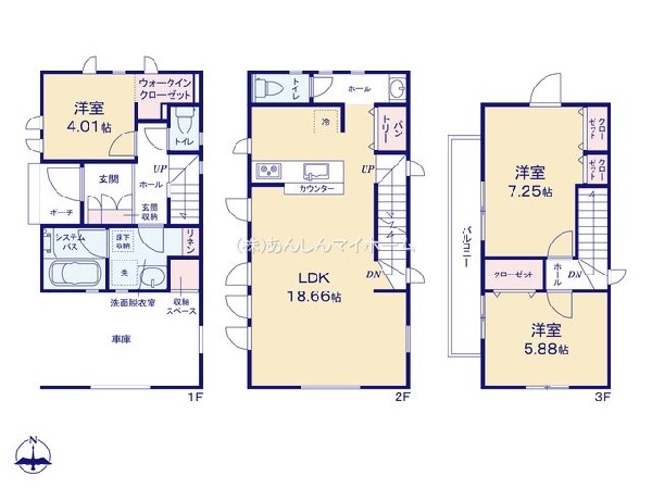 都市ガス、公営水道、公共下水、耐震構造、外壁サイディング、ビルトインガレージ、駐車場1台、整形地、角地、都市近郊、地盤調査済、市街地が近い、周辺交通量少なめ、2沿線以上利用可、小学校徒歩10分以内、公園5分以内、コンビニ5分以内、ウォークインクローゼット、対面キッチン、パントリー、都市ガス、整形地、システムキッチン、ガス3口、カウンタキッチン、対面キッチン、食器洗い機付き、浄水器、パントリー(食器・食品の収納庫)、ユニットバス、追い焚き、浴室乾燥機、ウォシュレット、トイレ2ヶ所、TV付浴室、浴室1坪以上、浴室に窓、暖房便座、セカンド洗面台、浴室暖房、バルコニー、3階建以上、LDK18畳以上、採光3面、全室2面採光、フローリング、全室フローリング、リビング階段、クローゼット、ウォークインクローゼット、収納、床下収納、下駄箱、全居室収納、洗面室収納、シャンプドレッサー付き、フラット35Sに対応、年内入居可、モニタ付きインターフォン、カードキー、複層ガラス、火災警報器(報知機)、通風良好、陽当り良好、24時間換気システム、建物10年保証