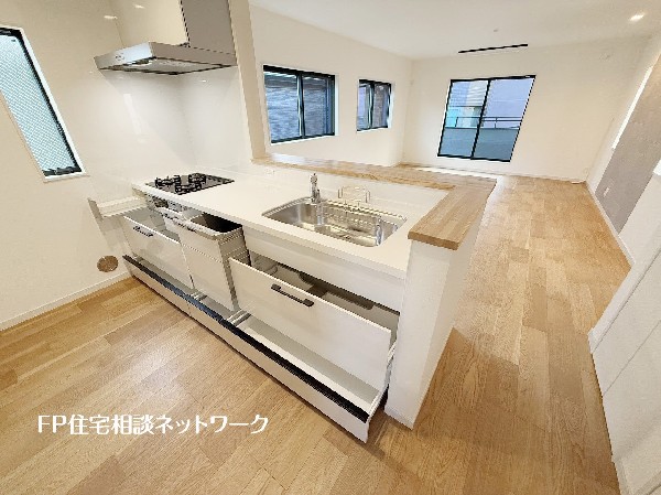 都市ガス、公営水道、公共下水、駐車場2台以上、緑豊かな住宅地、閑静な住宅地、平坦地、都市近郊、開発分譲地内、地盤調査済、南側道路面す、市街地が近い、周辺交通量少なめ、スーパーが近い(10分以内)、駅まで平坦、2沿線以上利用可、小学校徒歩10分以内、中学校徒歩10分以内、コンビニ5分以内、対面キッチン、パントリー、都市ガス、システムキッチン、ガス3口、対面キッチン、食器洗い機付き、浄水器、I型キッチン、パントリー(食器・食品の収納庫)、ユニットバス、追い焚き、浴室乾燥機、ウォシュレット、トイレ2ヶ所、浴室1坪以上、浴室に窓、暖房便座、浴室暖房、バルコニー、2階建、LDK18畳以上、全居室6畳以上、照明器具付き、採光2面、フローリング、リビング階段、クローゼット、下駄箱、全居室収納、シャンプドレッサー付き、庭、年内入居可、モニタ付きインターフォン、複層ガラス、火災警報器(報知機)、24時間換気システム、建物10年保証