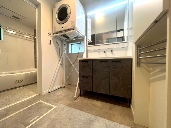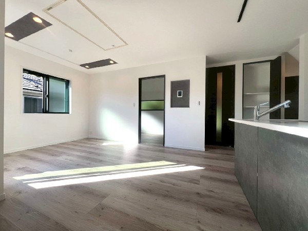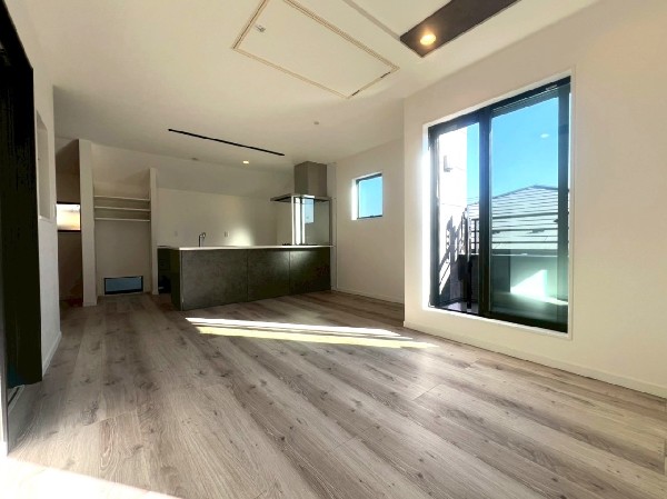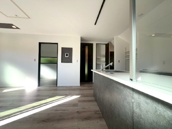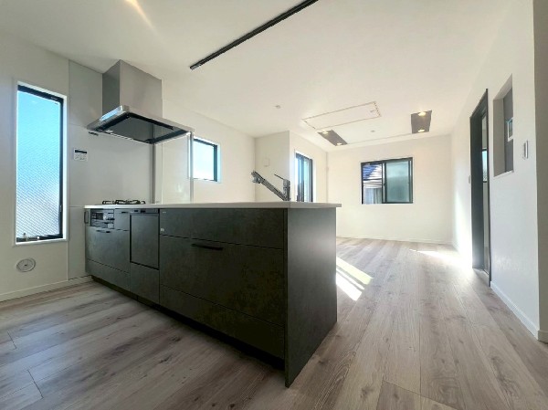 省エネ基準適合住宅 キッチンはペニンシュラ型+統一感を生み出すカップボード付き LDK電動シャッター・ガス乾燥機・宅配BOX・スマートキーなど充実設備! 東横線/横浜線「菊名」駅徒歩圏