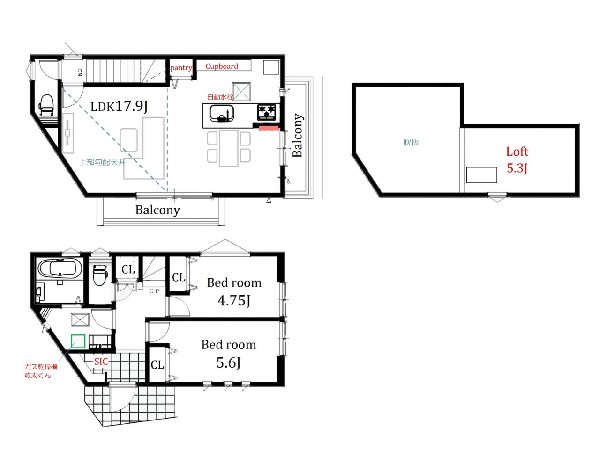 2路線利用可能「菊名」駅徒歩圏内 開放的な角地 パントリー付キッチン 勾配天井、ロフトのあるリビング