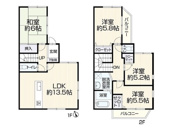 都市ガス、公営水道、公共下水、スレート葺、駐車場1台、整形地、緑豊かな住宅地、閑静な住宅地、都市近郊、市街地が近い、周辺交通量少なめ、スーパーが近い(10分以内)、始発駅、2沿線以上利用可、小学校徒歩10分以内、公園5分以内、コンビニ5分以内、システムキッチン、対面キッチン、セミオープンキッチン、ユニットバス、ウォシュレット、トイレ2ヶ所、浴室1坪以上、暖房便座、バルコニー、バルコニー2面、南面バルコニー、2階建、ロフト、和室、採光3面、南向き、全室2面採光、フローリング、天井高2.5m以上、クローゼット、押し入れ、収納、下駄箱、全居室収納、シャンプドレッサー付き、通風良好、陽当り良好、対面キッチン、都市ガス、整形地、建物10年保証